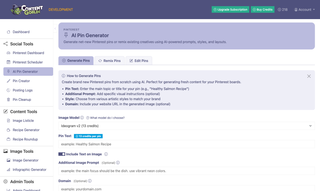 - Generate, remix, or edit pins with 9 AI models
